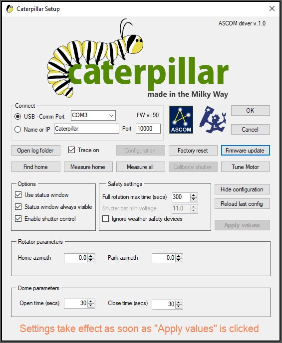Includes ASCOM drivers for domes.